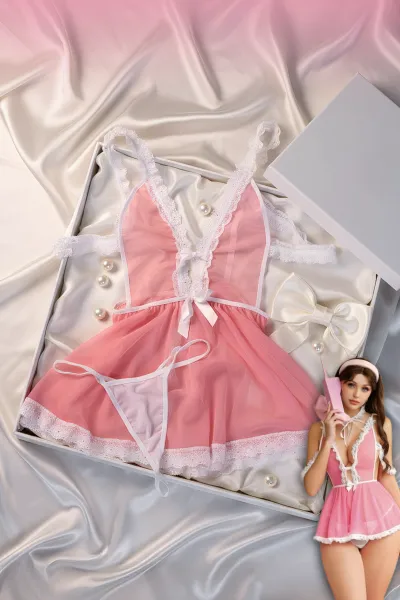 Pembe Dantelli Fantazi İç Giyim Babydoll Takımı